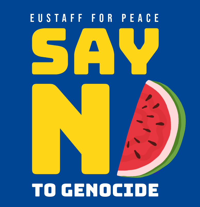Since november 2023 EUS4P is a safe space for public engagement, direct action and “loyal dissent” with EU institution, where EU staff can express their solidarity with victims of all wars, with special concern for the victims of the ongoing genocide in Palestine, certifed by the United Nations, Israeli humanitarian organisations and genocide scholars.